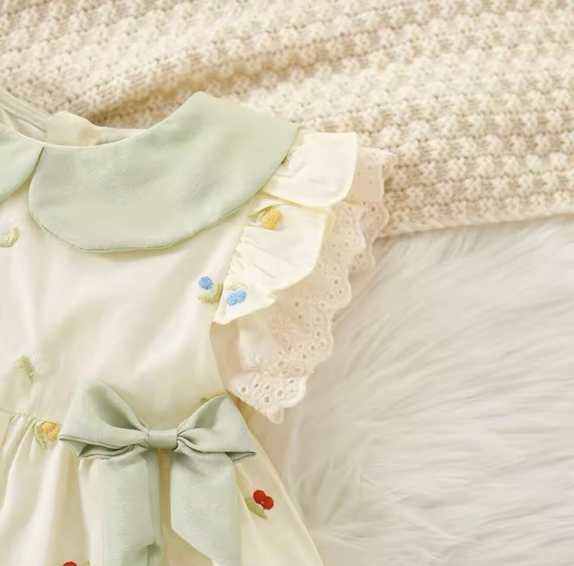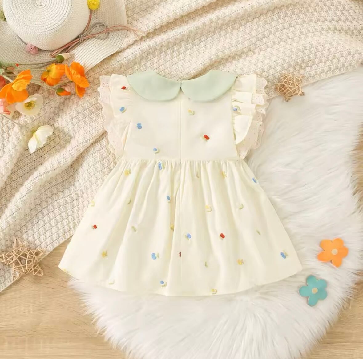 ☑お花刺繍Aラインワンピース